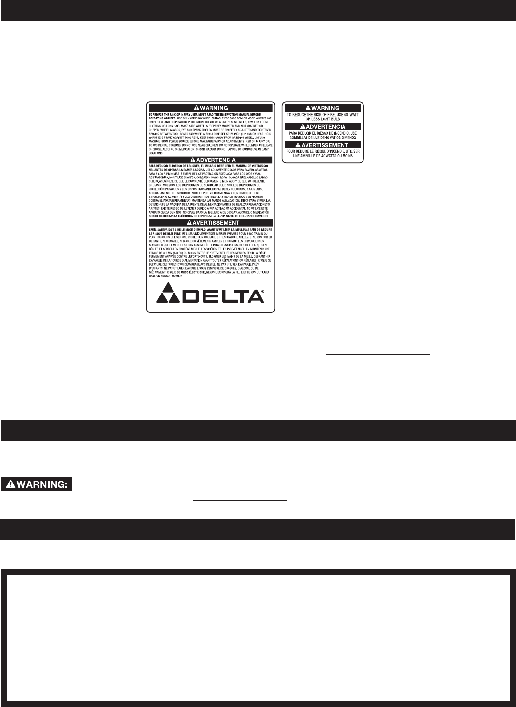 To register your tool for warranty service visit our website at www.deltamachinery.com.
