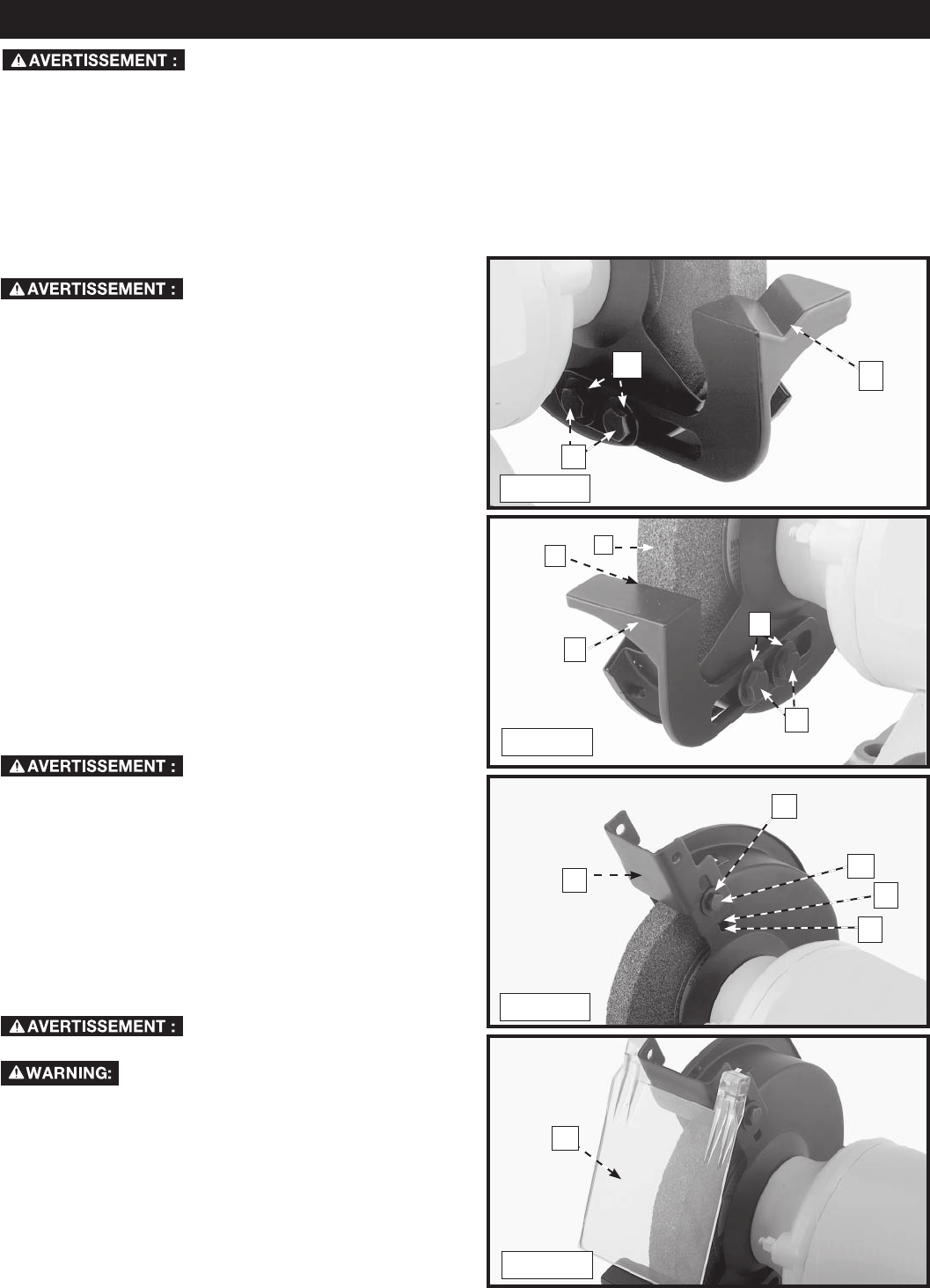 l’intérieur du protège-meule gauche et le fixer à l’aide