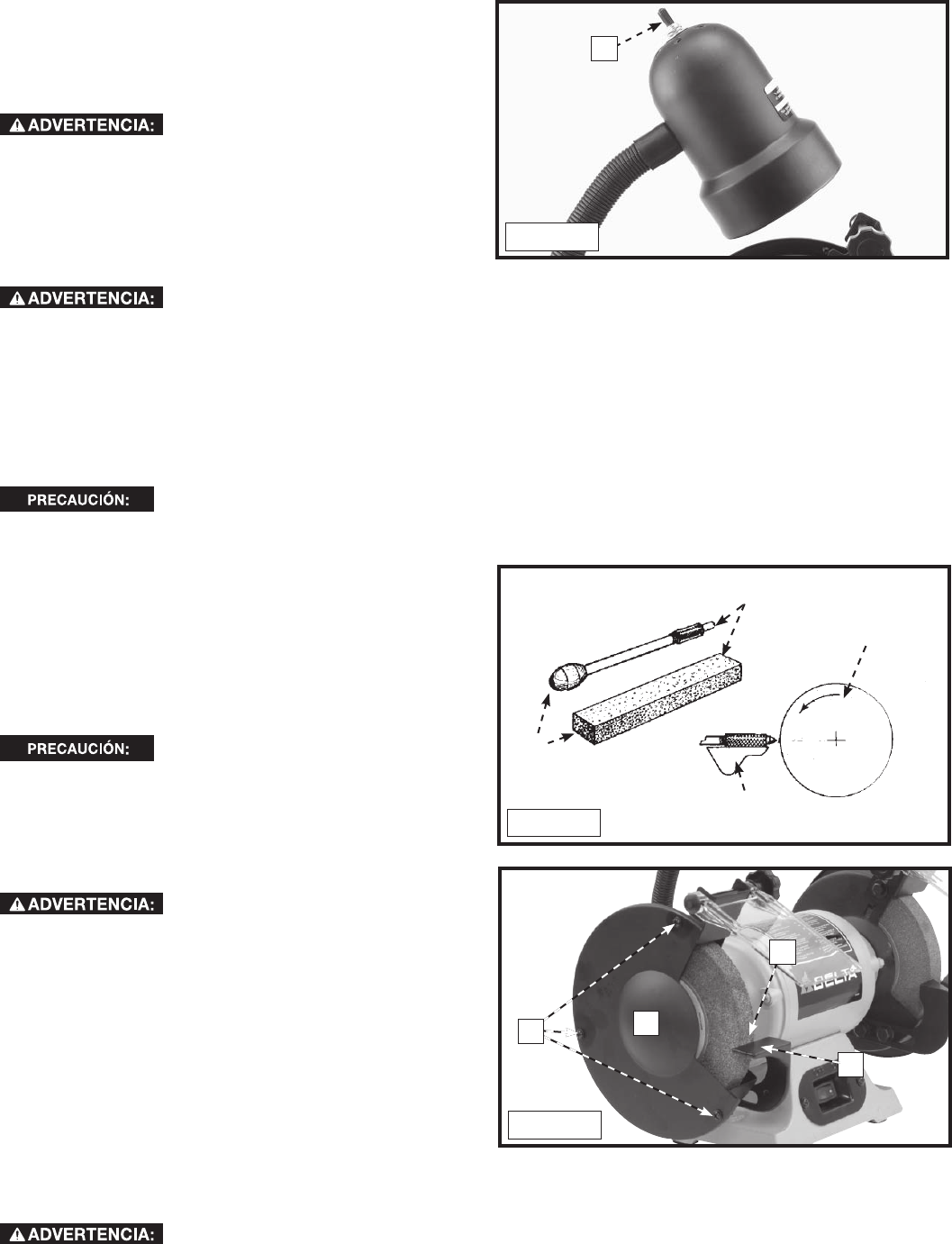 y el soporte de la herramienta. A medida que los discos para esmerilar disminuyen su tamaño debido al uso, ajuste los